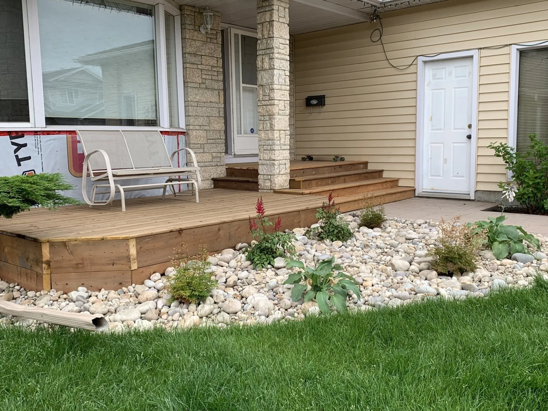 Another front yard landscape design project was completed successfully in Edmonton. We re-graded the front yard to give the client a nice sitting area in the front. Borealis Wall block